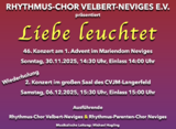 "Liebe leuchtet“ heißt der Titel des Konzerts im großen Saal des CVJM-Langerfeld am 06.12.2025.