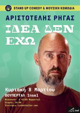 Der allbekannte und beliebte Stand-Up Comedian und Musiker Aristotelis Rigas kehrt mit seiner vierten Soloshow betitelt “Ich habe keine Ahnung” (Idea den eho) zurück. Bekannt für seinen intelligenten Humor, seine explosiven Wortspiele und seine satirische Perspektive, die Stereotype vermeidet und mit Political Correctness „flirtet“, präsentiert er sein viertes komplettes Werk zum ersten Mal in Wuppertal!